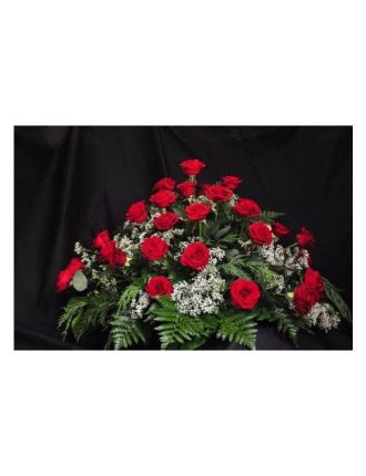 Centro mortuorio de rosas rojas