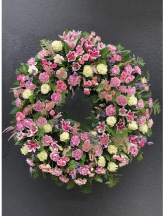 Corona de flor 60 cm, diámetro interior, rosas rosas