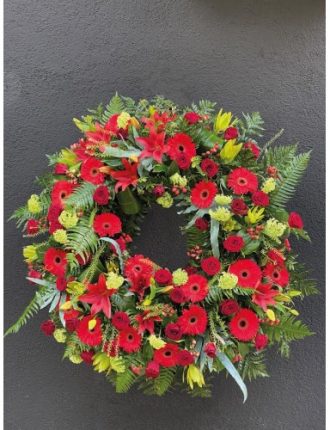 Corona de flor 60 cm, diámetro interior, rosas rojas