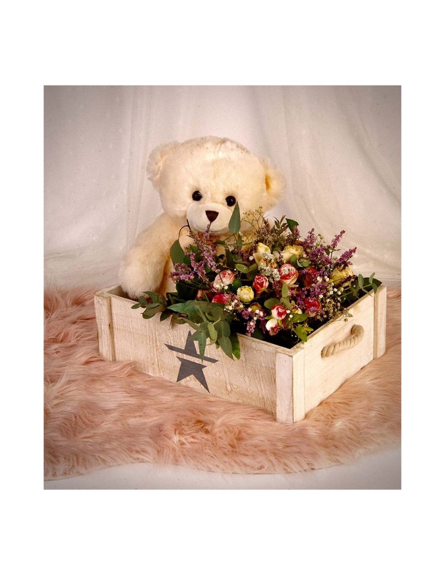 Inicio Tienda Para el Bebé más bonito Caja de madera Xl, peluche y centro floral