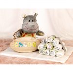 Jarrón con flores variadas y caja huella pie